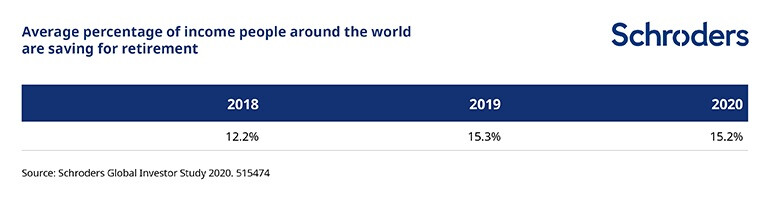 Schroders Global Investor Study (GIS) 2020 found, on average, investors are saving 15.2% of their income specifically for their retirement.