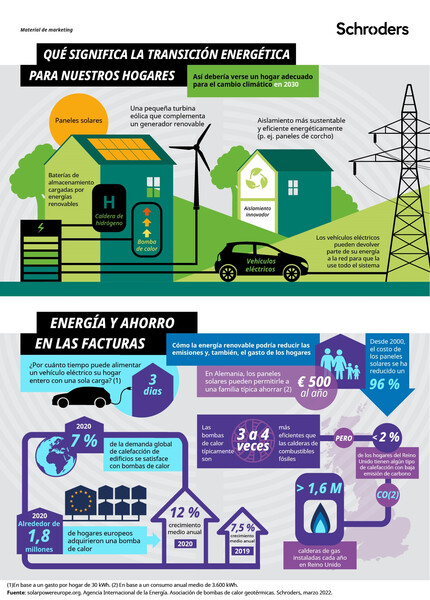 La siguiente infografía muestra el papel que desempeña un hogar “neto cero” en la transición energética y las oportunidades que esto brinda a los inversores.