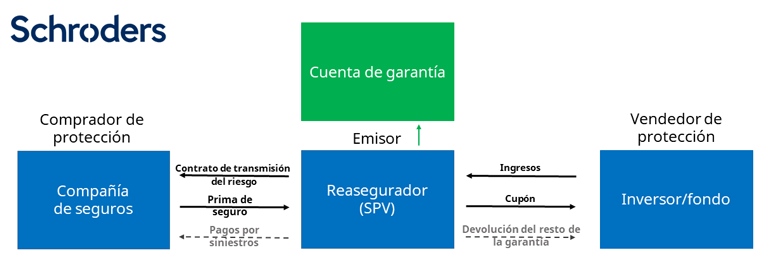 Información Importante: Las opiniones expresadas aquí son las de Beat Holliger, Responsable de producto, ILS, y no representan necesariamente las opiniones declaradas o reflejadas en las Comunicaciones, Estrategias o Fondos de Schroders. El presente documento ha sido redactado con una finalidad exclusivamente informativa. Su contenido no constituye una oferta de compra o venta de ningún instrumento o título financiero, ni una sugerencia para adoptar ninguna estrategia de inversión. La información contenida en el presente no constituye un asesoramiento, una recomendación o un análisis de inversión y no tiene en cuenta las circunstancias específicas de ningún destinatario. Este material no constituye una recomendación contable, jurídica o tributaria y no debe ser tenido en cuenta a tales efectos. Se considera que la información contenida en este documento es fiable, pero Schroders no garantiza su exhaustividad o exactitud. La compañía no se responsabiliza de los errores de hecho u opiniones. No se debe tomar como referencia la información y opiniones contenidas en este documento a la hora de tomas decisiones estratégicas o decisiones personales de inversión. La rentabilidad registrada en el pasado no es un indicador fiable de los resultados futuros. El precio de las acciones y los ingresos derivados de las mismas pueden tanto subir como bajar y los inversores pueden no recuperar el importe original invertido. Por favor leer la pertinente "Información Importante" vinculada, que forma parte integral de los términos de uso de los sitios web de Schroders.