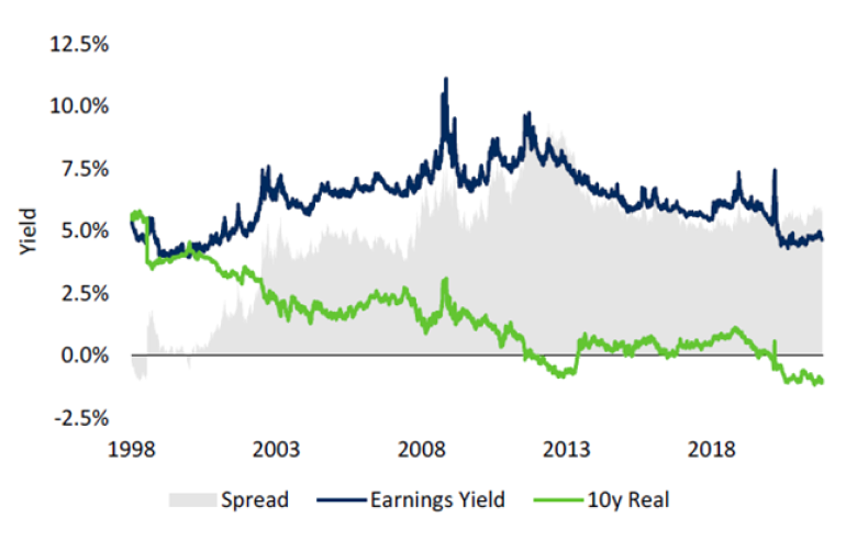 Earnings Yield vs 10y Real USA