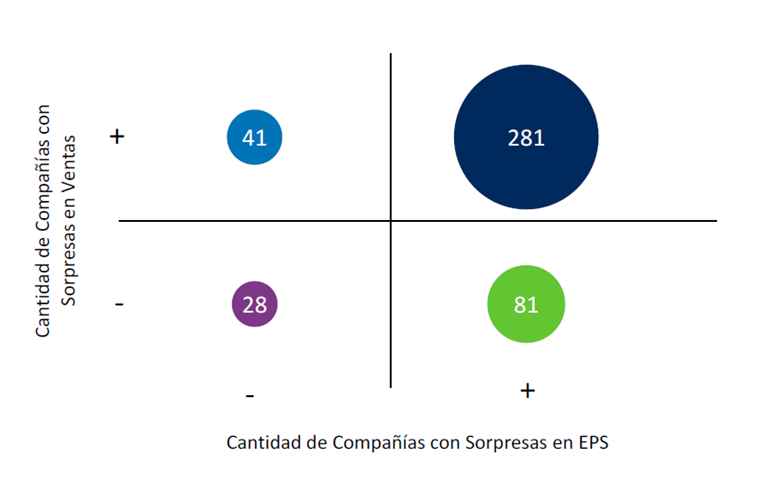 Compañías agrupadas por sorpresas en Ventas y EPS (Earnings per Share)