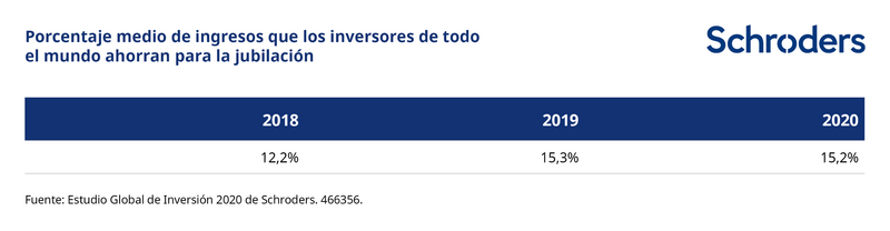 El Estudio Global de Inversión (GIS) 2020 de Schroders ha llegado a la conclusión de que los inversores ahorran, en promedio, un 15,2% de sus ingresos para la jubilación.