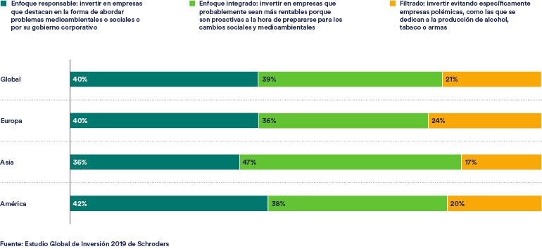 El enfoque responsable es el preferido en América (42%) y Europa (40%) mientras que el integrado gana en Asia (47%).