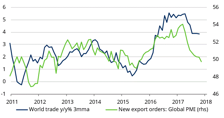 Las perspectivas para el comercio global se antojan complicadas, dado que los indicadores adelantados, como el índice global de gestores de compras (PMI) de los pedidos de exportaciones, apuntan a una acentuación de la ralentización durante los próximos meses. Los nuevos pedidos de exportaciones constituyen un indicador de la actividad comercial futura. Por tanto, parece poco probable que un repunte del comercio internacional se traduzca en una nueva convergencia del crecimiento global.