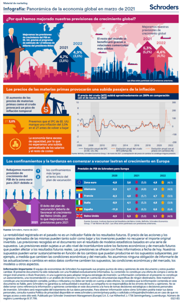 La infografía de este mes analiza por qué hemos mejorado las previsiones de crecimiento mundial, las perspectivas de inflación y cómo la lentitud en la implantación de las vacunas pesará en el crecimiento de la eurozona