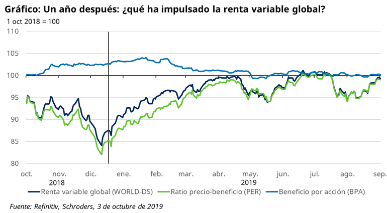 Este resurgimiento del impulso macro ha sido una de las características clave de 2019 y podría considerarse un argumento en contra de nuestra tesis del paso de lo macro a lo micro. No obstante, solo es una parte de la historia de los últimos doce meses que no tiene en cuenta las profundas correcciones vividas en el cuarto trimestre de 2018.