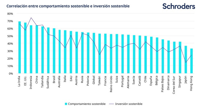 El Estudio Global de Inversión 2017 de Schroders reveló que los países con un porcentaje mayor de consumidores con hábitos de vida sostenibles también suelen contar con más inversores que optan por invertir siguiendo esta tendencia.