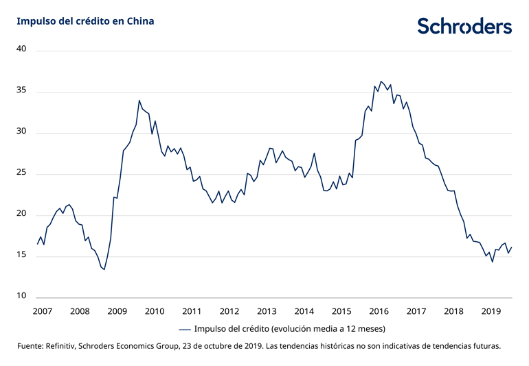 Fuente: Refinitiv, Schroders Economics Group, 23 de octubre de 2019. Las tendencias históricas no son indicativas de tendencias futuras.
