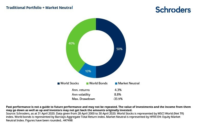 Las estrategias market neutral podrían considerarse como parte de la asignación alternativa de una cartera diversificada, o bien podrían utilizarse para aumentar la asignación de renta variable de un inversor. En cualquier caso, el objetivo es un aumento conjunto de la diversificación, reduciendo el riesgo medido por la volatilidad al tiempo que se mantiene el riesgo específico de la acción.