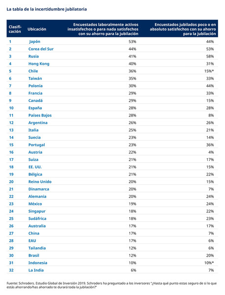 Como dice Chawla: “Las diferencias en la preocupación que existen entre unos países y otros pueden deberse a muchas razones. Entre ellas, la mayor o menor generosidad de las pensiones públicas, la perspectiva general de los inversores o el hecho de no saber exactamente lo que van a necesitar.