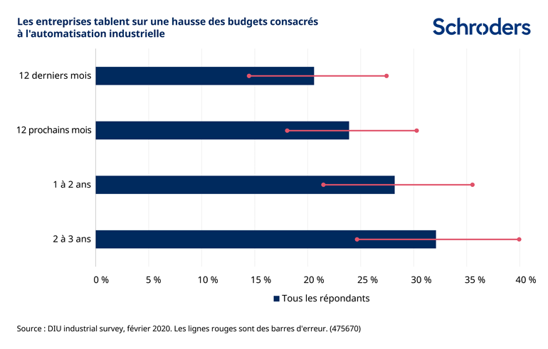 Une étude récente réalisée par la Bank of America Merrill Lynch a mis en évidence que 83 % ou plus des secteurs dépendants des chaînes d’approvisionnement étrangères envisagent un changement de stratégie ou ont mis en œuvre un plan de changement de chaînes d’approvisionnement - un facteur clé à cet égard étant la possibilité d’automatiser des usines plus proches de leur marché domestique.