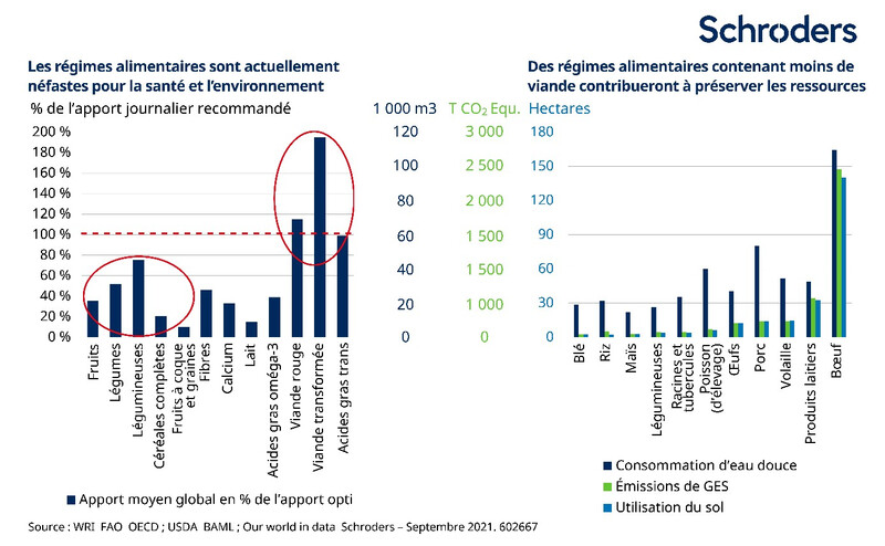 Du point de vue de l’investissement, nous pensons que ces trois changements structurels – augmentation des rendements et de l’efficacité, modification des habitudes alimentaires et réduction des déchets/émissions – créeront une mine d’opportunités dans les chaînes de valeur de l’alimentation et de l’eau.