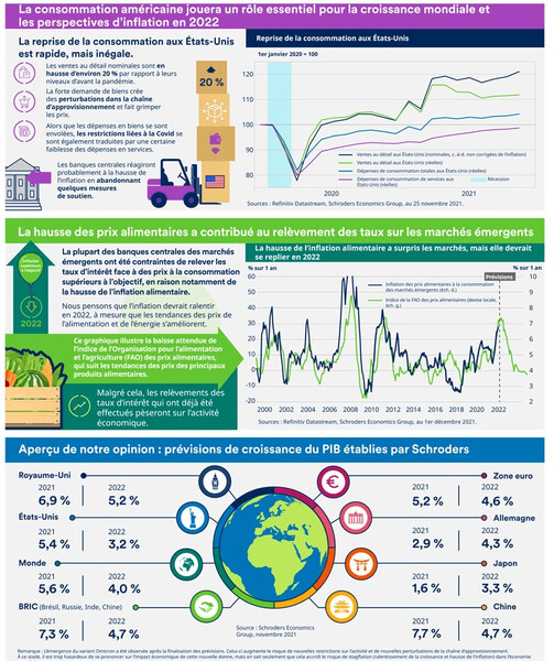 Ce document exprime les avis et opinions de l’équipe d’économistes de Schroders et ne représente pas nécessairement les opinions formulées ou reflétées dans d’autres supports de communication, présentations de stratégies ou de fonds de Schroders. Ce document n’est destiné qu’à des fins d’information. Il ne constitue pas une offre ou une sollicitation d’achat ou de vente d’un instrument financier quelconque. Il n’y a pas lieu de considérer le présent document comme contenant des recommandations en matière comptable, juridique ou fiscale, ou d’investissements. Schroders considère que les informations contenues dans ce document sont fiables, mais n’en garantit ni l’exhaustivité ni l’exactitude. Nous déclinons toute responsabilité pour toute opinion erronée ou pour toute appréciation erronée des faits. Aucun investissement et/ou aucune décision d’ordre stratégique ne doit se fonder sur les opinions et les informations contenues dans ce document. Publié par Schroder Investment Management (Switzerland) AG, Central 2, CH-8001 Zurich. Agréée et réglementée par l’Autorité fédérale suisse de surveillance des marchés financiers (FINMA). Pour votre sécurité, les communications peuvent être enregistrées et surveillées. 1221/CHFR