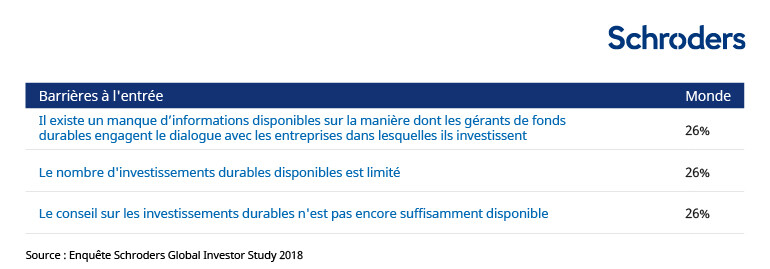 Lorsqu'on leur a demandé ce qui les empêche d'investir de façon durable, les trois réponses les plus fréquemment données ont été :