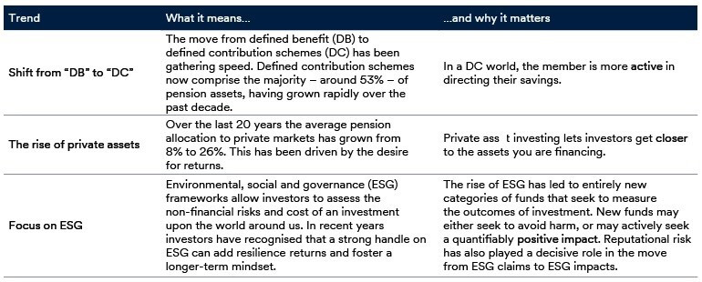 Aujourd’hui, le marché britannique des régimes à contributions définies représente environ 500 milliards de livres sterling et devrait atteindre 1 billion de livres sterling à la fin de cette décennie. Nous prévoyons une consolidation significative au sein des «master trusts», qui gèrent les régimes regroupés de nombreux employeurs.