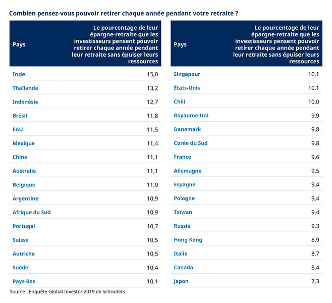 Les investisseurs estiment qu’ils peuvent procéder à des retraits importants sur leur épargne-retraite sans épuiser leurs ressources, selon l’enquête Global Investor Study 2019 de Schroders.