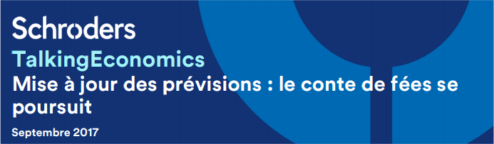 Du côté de la croissance, les prévisions américaines restent inchangées pour 2017 et la révision à la hausse pour la zone euro s'accompagne d'un renforcement des prévisions pour la Chine et sur marchés émergents au sens large. En 2018, la croissance mondiale devrait rester stable à 3 % avec une modeste révision à la baisse pour les États-Unis, compensée par une revue à la hausse dans la zone euro et les marchés émergents.