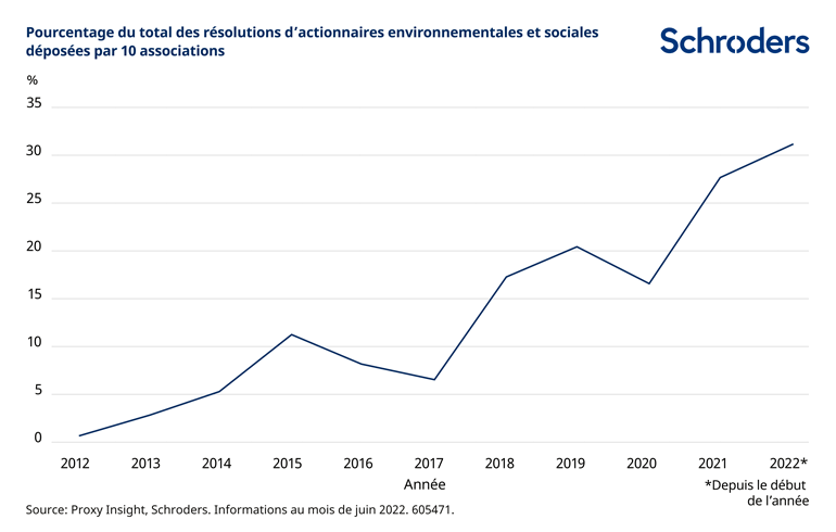 Le processus de dépôt de résolutions aux assemblées générales des sociétés existe dans la plupart des grands marchés. Les résolutions d’actionnaires permettent aux détenteurs d’actions de soumettre à l’ensemble des actionnaires des propositions de changements à opérer par l’entreprise concernée, souvent axées sur les questions sociales et environnementales.
