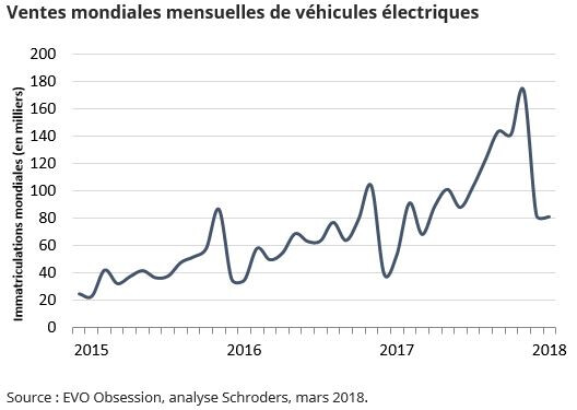 Les prévisions concernant l'utilisation de la voiture électrique reflètent cette transition, avec 300 millions de véhicules électriques (VE) sur les routes du monde d'ici 2040. Ces projections exigent une croissance rapide du stock actuel de VE, qui est inférieur à trois millions de véhicules.