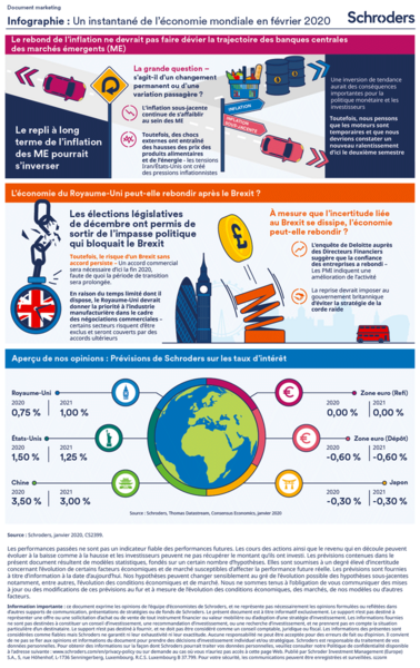 Ce document n’est destiné qu’à des fins d’information et ne constitue nullement une publication à caractère promotionnel. Il ne constitue pas une offre ou une sollicitation d’achat ou de vente d’un instrument financier quelconque. Il n’y a pas lieu de considérer le présent document comme contenant des recommandations en matière comptable, juridique ou fiscale, ou d’investissements. Schroders considère que les informations contenues dans ce document sont fiables, mais n’en garantit ni l’exhaustivité ni l’exactitude. Nous déclinons toute responsabilité pour toute opinion erronée ou pour toute appréciation erronée des faits. Aucun investissement et/ou aucune décision d’ordre stratégique ne doit se fonder sur les opinions et les informations contenues dans ce document.
