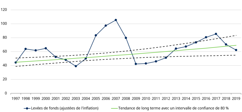 Les segments avec de fortes barrières à l’entrée présentent une dynamique plus saine. L’univers d’investissement pour les transactions de petite taille est plus vaste, et les fonds de grande taille y ont un accès limité, car il est plus difficile de déployer rapidement de grandes quantités de capitaux. Sur les LBO de petites et moyennes entreprises aux États-Unis et en Europe, le capital risque à l’échelle mondiale et les investissements de croissance initiale en Asie, les levées de fonds sont stables, voire en baisse. Il s’agit d’un indicateur positif pour les rendements à venir. L’environnement de taux bas a permis à certains gérants d’augmenter en taille et de lever des fonds plus importants, ce qui les a fait sortir de ces segments.