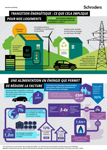 L’infographie ci-dessous montre le rôle d’une maison « net zéro » dans la transition énergétique et les opportunités qui en découlent pour les investisseurs.