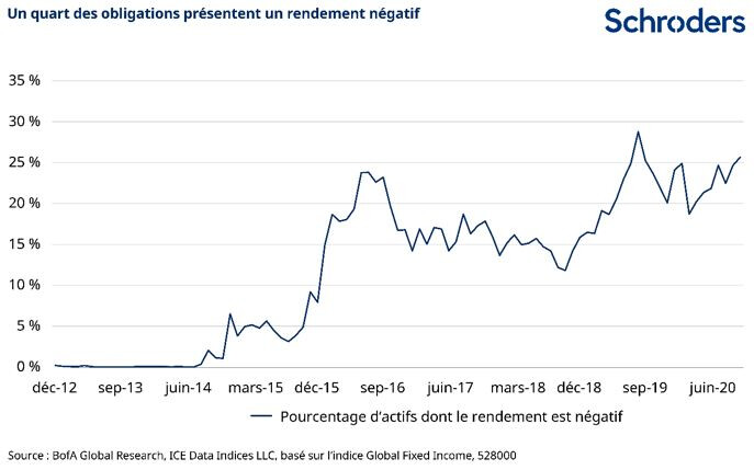Les taux d’intérêt et les rendements ont encore baissé en 2020. Pour de nombreux investisseurs, les choix habituels générateurs de revenus, à savoir les comptes d’épargne, les fonds monétaires ou les emprunts d’État, offrent un revenu négligeable ou nul, voire même un rendement négatif (ce qui signifie une perte en capital assurée, si le placement est détenu jusqu’à l’échéance).