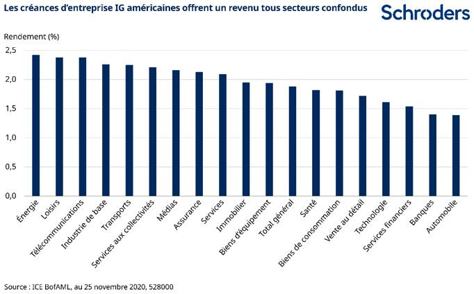 Bien que le crédit ait fortement rebondi depuis mars dans l’ensemble, il existe encore des poches manifestes de valeur. Certains secteurs ont été plus pénalisés que d’autres par les mesures de confinement et ont sous-performé à l’occasion du rebond. Ces secteurs pourraient particulièrement bien se comporter, notamment en cas de déploiement accéléré des vaccins.