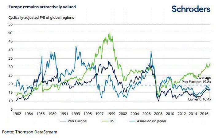 Figura 1: la valutazione attraente dell’Europa. CAPE ratio di diverse aree globali.
