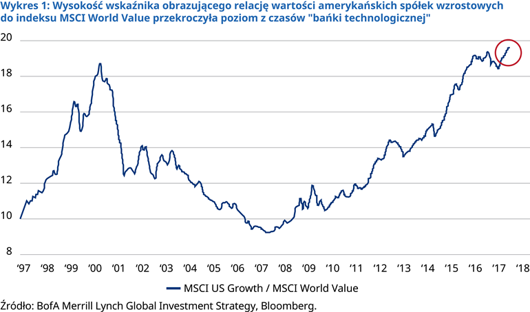 Podobnie jak pod koniec lat 90. ub.w., obecnie doświadczamy ogromnej koncentracji kapitału na rynku amerykańskim. Ponownie zjawisko to jest spowodowane przez wzrost innowacji i rozwój technologii. Zarówno wtedy, jak i teraz, inwestycje w „wartość”, które polegają na długoterminowym inwestowaniu w akcje spółek wyceniane poniżej ich realnej wartości, jest (w ujęciu relatywnym) niezwykle niepopularne.