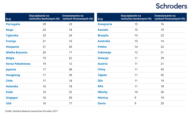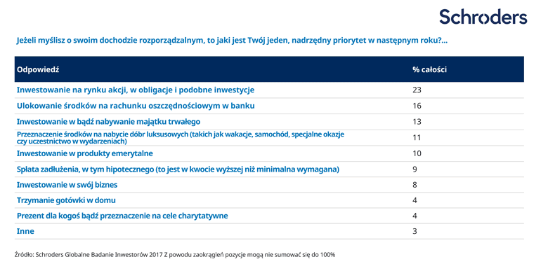 Źródło: Schroders Globalne Badanie Inwestorów 2017