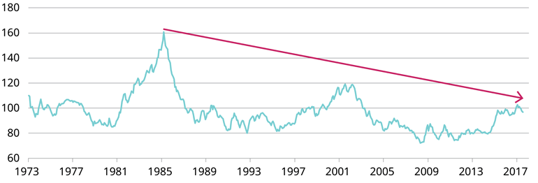 Źródło: Bloomberg - Październik 2017 r. Indeks dolara USA ważony wymianą handlową.