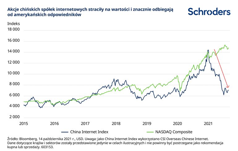 Przypatrując się bliżej chińskim akcjom, należy zwrócić uwagę zwłaszcza na duże spółki internetowe, wobec których pozostajemy dość ostrożni, nawet po relatywnie słabych wynikach sektora w 2021 roku.