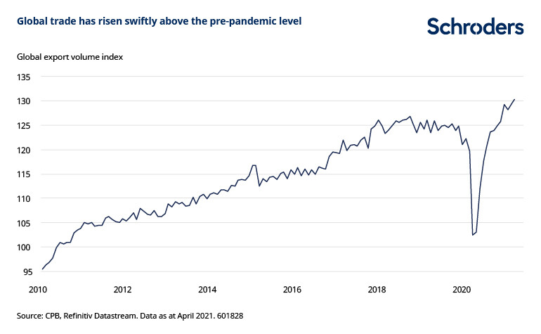 Despite the significant impact of the Covid-19 pandemic on the global economy, global trade has weathered the storm surprisingly well. Global export volumes, after dropping sharply in the early stages of the pandemic, have rebounded and are now well above the pre-pandemic level. Clearly, the unprecedented fiscal stimulus measures in many countries have boosted demand for various goods.
