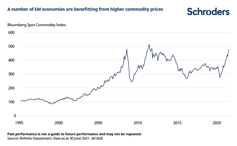 Higher commodity prices are crucial for many EM countries that have struggled over the last decade, especially in Latin America.
