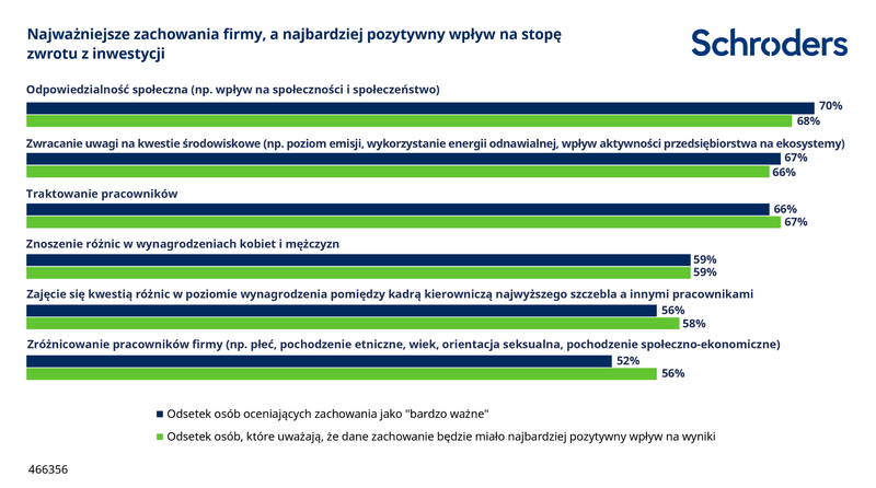 Szerszy wpływ przedsiębiorstw na aspekty społeczne, to zagadnienie związane ze zrównoważonym rozwojem, które dla inwestorów ma największe znaczenie - wynika z Globalnego Badania Inwestorów Schroders.