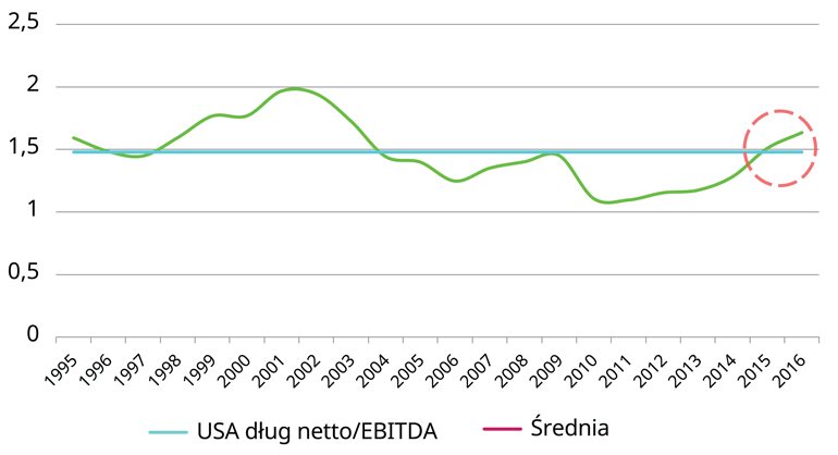 USA dług netto/EBITDA USA dług netto/EBITDA USA dług netto/EBITDA Średnia