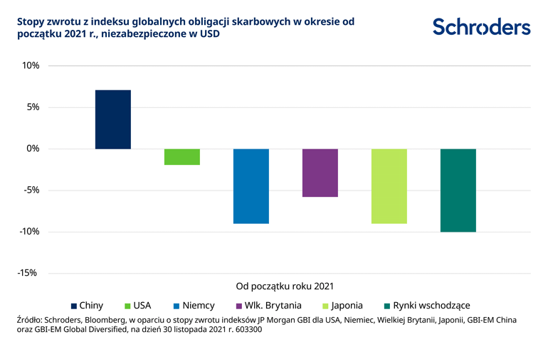 Jednak reformy regulacyjne, kryzys energetyczny i wynikająca z działań regulacyjnych i obaw związanych z Evergrande niestabilność na rynku nieruchomości okazały się dla rynków dodatkowymi problemami do rozważenia. Doprowadziło to w 2021 r. do pewnych kontrastów w wynikach między rynkami obligacji i akcji.