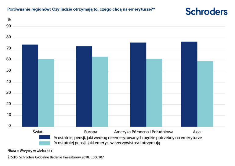 Na przestrzeni regionów, inwestorzy w Azji i Amerykach oczekują, że będą potrzebowali najwyższej stopy zastąpienia, wierząc że potrzebny dochód wynosi 2/3 ich bieżącej pensji.