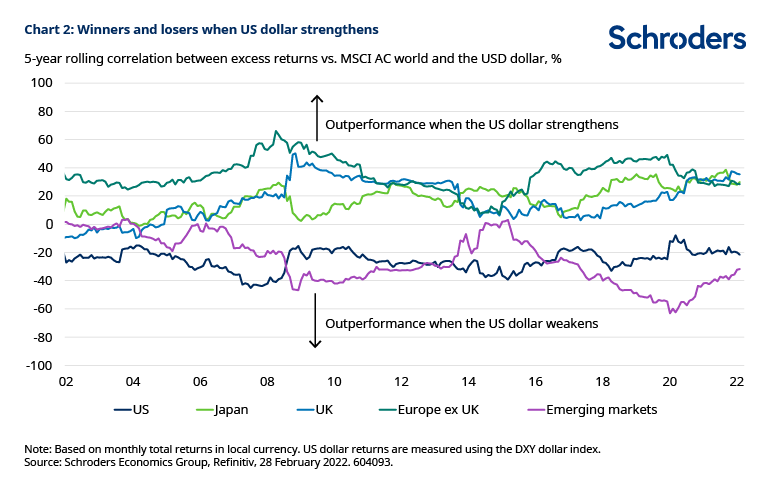 Before the tragedy in Ukraine, US bond yields, particularly real yields, had started to rise. This hit the US and tech stocks and spurred investors to seek non-US markets with a bias towards the value sectors. But not all markets have benefitted from higher yields and the performance of emerging market (EM) equities has been hindered by the strength of the US dollar.
