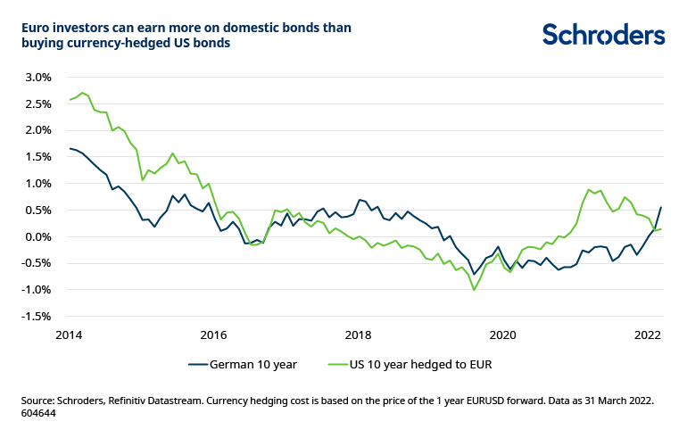 In 2021, hedged US yields were far more attractive for them than hedged euro yields. However, the sharp increase in US dollar hedging costs has upended this hierarchy.