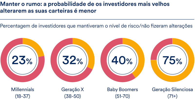 "Isso poderá ser explicado por vários fatores", considerou Rupert. "Uma das hipóteses é talvez a maior probabilidade de os investidores mais velhos terem estruturado as carteiras em torno a um plano a longo prazo. Assim, é mais fácil aguardarem em momentos de crise e deixarem os investimentos inalterados".