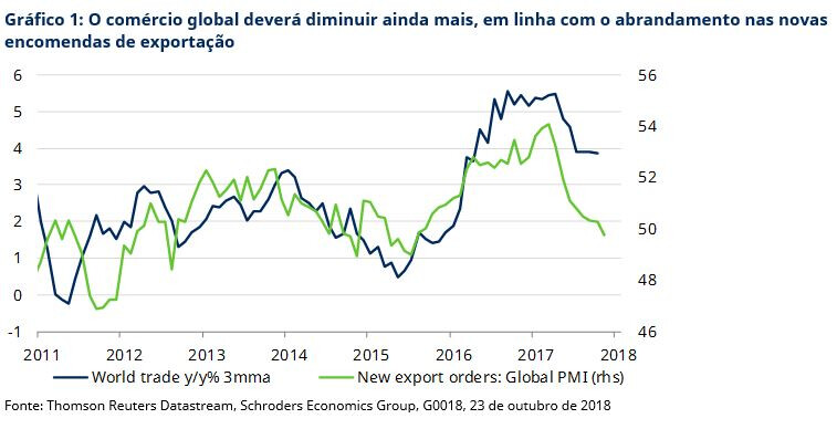 O crescimento global em 2017 caracterizou-se pela expansão sincronizada das principais economias do mundo. Isto deveu-se, em grande parte, ao crescimento sólido do comércio global ter gerado uma onda que levantou todos os barcos. Desde que o comércio global diminuiu em 2018, o crescimento económico tornou-se menos coordenado. Enquanto a China, Europa e Japão viram todos as suas taxas de crescimento arrefecer, a economia dos EUA continua a todo o vapor.