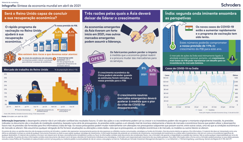 A infografia deste mês centra-se na recuperação económica no reino unido, no porquê do crescimento dos mercados emergentes estar alinhado com a Ásia e na corrente onda do virus na India.