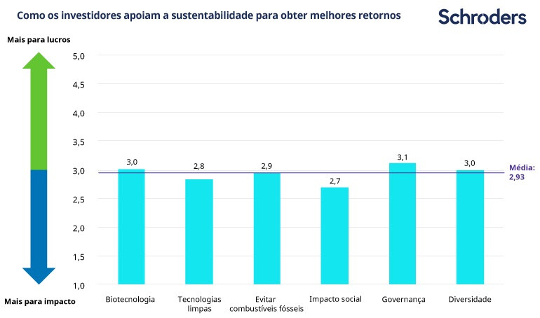 O Estudo de Investidores Globais de 2017 da Schroders, realizado a 22.100 pessoas que investem em 30 países, constatou que a maioria deles considera o investimento sustentável como uma forma de gerar lucros e não apenas um potencial impacto positivo.