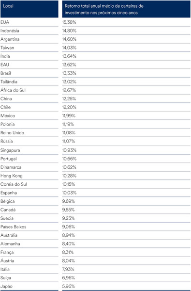 Em ambos os inquéritos de 2019 e de 2020, os investidores que previam os retornos mais elevados viviam em economias com inflação e taxas de juro altas. Estes fatores geram, normalmente, retornos nominais mais elevados da liquidez e outras poupanças.