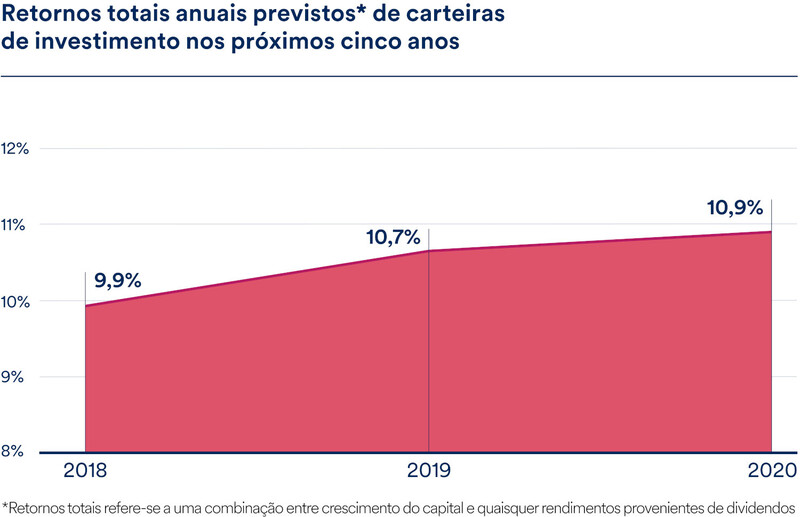 Outras disparidades geográficas mantiveram-se geralmente consistentes entre 2019 e 2020. Os investidores de vários mercados emergentes, incluindo a Indonésia, Argentina, Brasil, Índia e Chile, continuam entre os mais otimistas em relação aos rendimentos futuros gerados pelas suas carteiras, prevendo retornos anuais superiores a 12%.