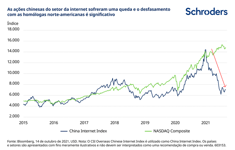 Dito isto, os mercados incorporaram rapidamente a mudança de perspetivas. As avaliações para o mercado da China em geral recuaram significativamente e a perspetiva de um crescimento muito mais fraco já foi descontada, logo, os riscos de perda devem ser menores do que há seis meses.