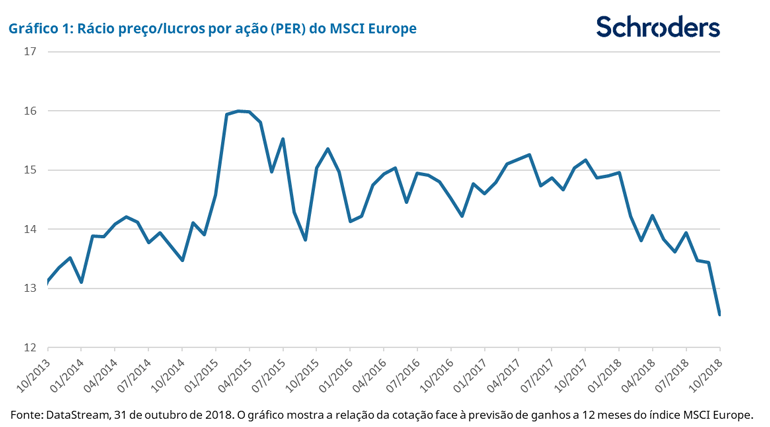 Embora as empresas europeias não tenham beneficiado da bonança da recompra de ações2 registada nos EUA, a rentabilidade de dividendos das ações europeias está muito saudável nos 3,7% (MSCI Europe, em 31 de outubro de 2018) e os balanços das empresas, em geral, estão de boa saúde.