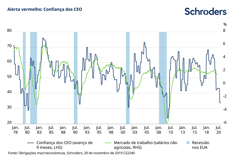 Este documento destina-se apenas a fins informativos. O material não deve ser interpretado como uma oferta ou solicitação à compra ou venda de qualquer instrumento financeiro ou título ou para adotar qualquer estratégia de investimento. A informação facultada não pretende ser consultoria de investimento, recomendação de investimento ou análise sobre investimentos e não tem em conta as circunstâncias específicas de qualquer destinatário. O material não se destina a fornecer nem deverá servir de base a aconselhamento contabilístico, jurídico ou fiscal. As informações contidas neste documento são consideradas fiáveis, mas a Schroders não garante a integralidade ou exatidão das mesmas. Não se aceita qualquer responsabilidade por erros de facto ou opinião. Os pontos de vista e informações contidos neste documento não devem servir de base a decisões de investimento individuais e/ou estratégicas.
